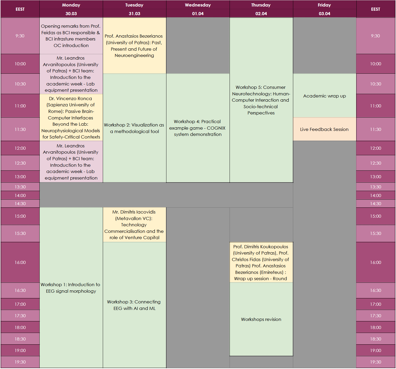 The workshop kicked off with engaging lectures from distinguished experts including Vincenzo Ronca (Sapienza University of Rome), ANASTASIOS BEZERIANOS (University of Patras), and Demetris Iacovides (Metavallon VC). Their insights into neurotechnology, brain signal acquisition, and real-world BCI applications set the tone for an impactful week.